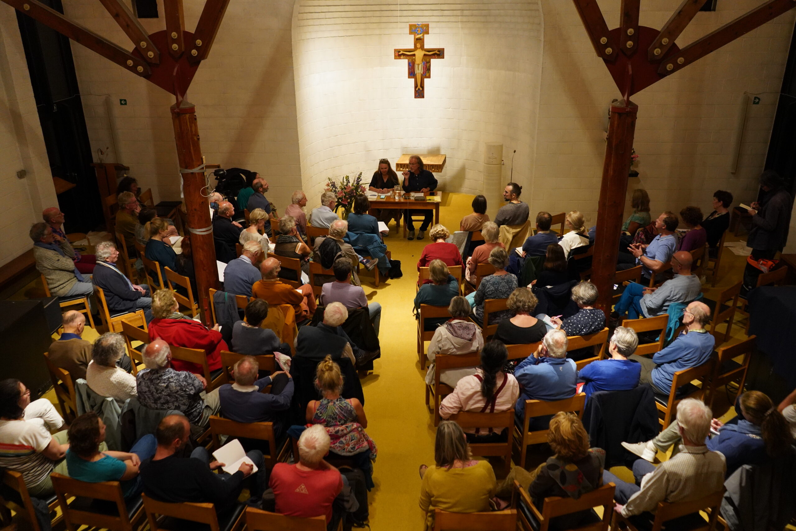 Ce samedi soir 20 septembre, le monastère Saint-André et le collectif Cimes & Racines avaient invité en partenariat deux intervenants à une rencontre autour du thème : « Transition intérieure et tradition monastique: une réponse pertinente aux défis de notre temps? »