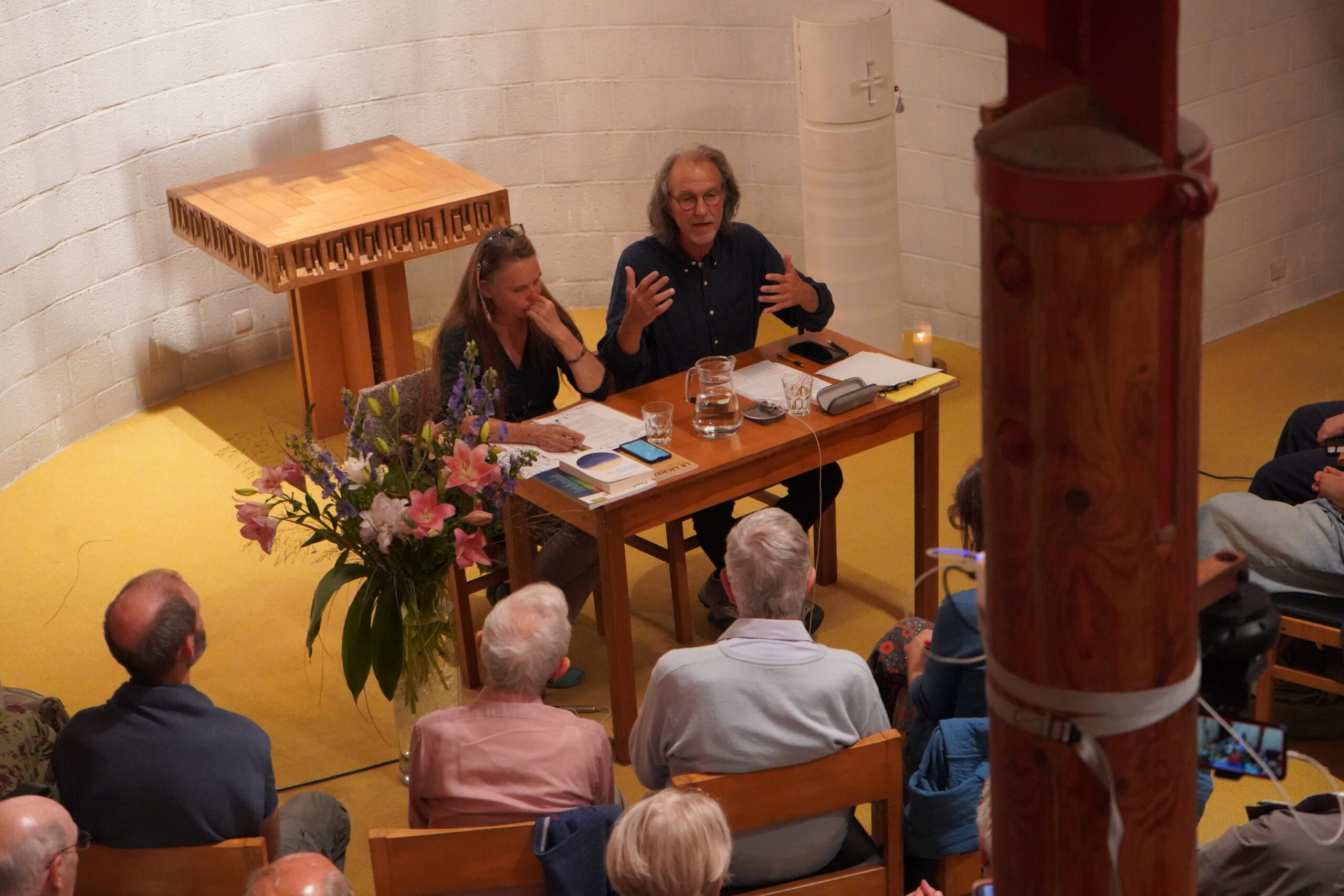 Enfin, après un bref temps de partage en binômes entre les membres de l’assistance, Christine et Michel Maxime ont répondu aux questions et réactions du public, avec le soutien des pertinentes interventions de certains moines de la communauté, les frères Pierre, Damien et Grégoire.